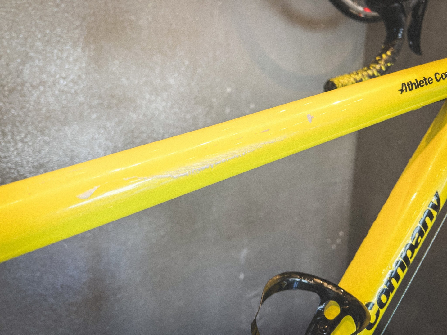 特に目立っていたのは、トップチューブに入ったひと筋の傷。おそらく立てかけたときについたもので、視界に入るたび気になっていたそうです。