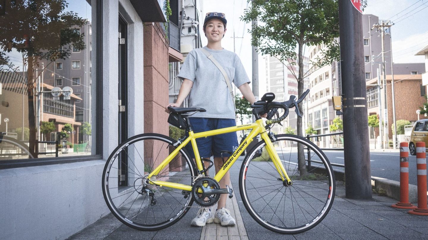 彼女の愛車は、トライアスロン界で知られるショップ「アスリートカンパニー」のオリジナルモデル。