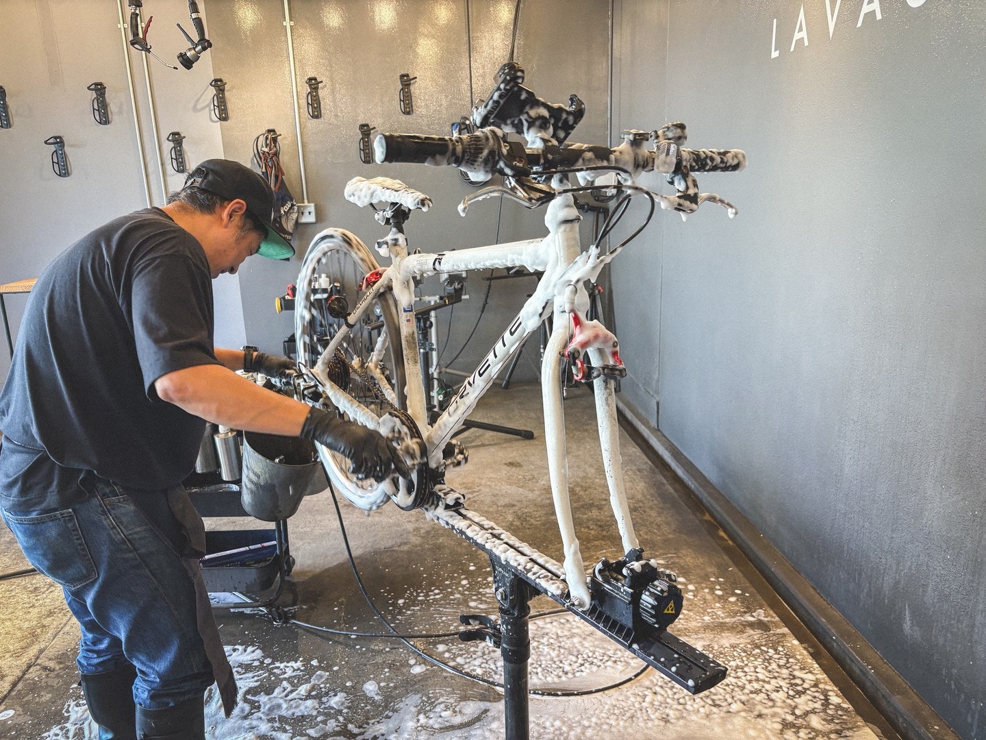 ただ、2ヶ月もの間放置されていた自転車は、状態がかなり深刻。フレームには泥や砂、埃がびっしり。チェーンやギアには油汚れが固まり、自分で洗おうにも到底手に負えないレベル。そんなお困りの状態のなか今回ラバッジョにお越しいただきました。