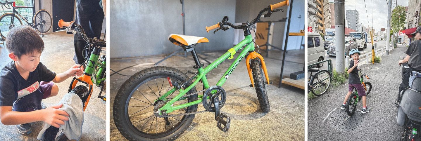 仕上がった自転車を見て、お母さんは「これなら次の弟も乗れそう」とにっこり。お子さん自身も「すげえ速い!」と満足げに叫びながら帰っていく後ろ姿がとても印象的でした。洗車という一見小さな体験が、ご家族の会話や思い出になり、さらに次へとつながっていく――その場に立ち会えたことがとても嬉しいひとときでした。