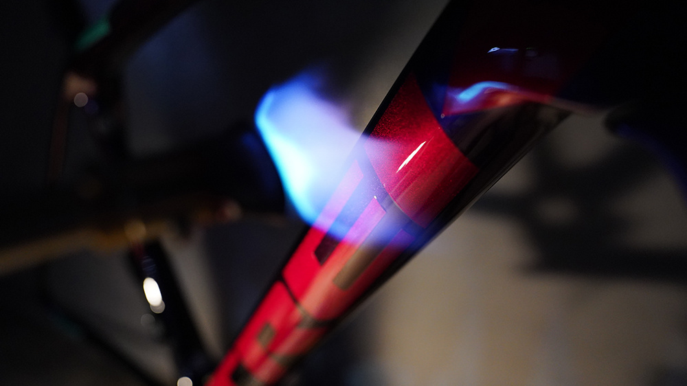施工前に行う特殊なガスバーナー処理によりコーティングの密着性が飛躍的に向上します。